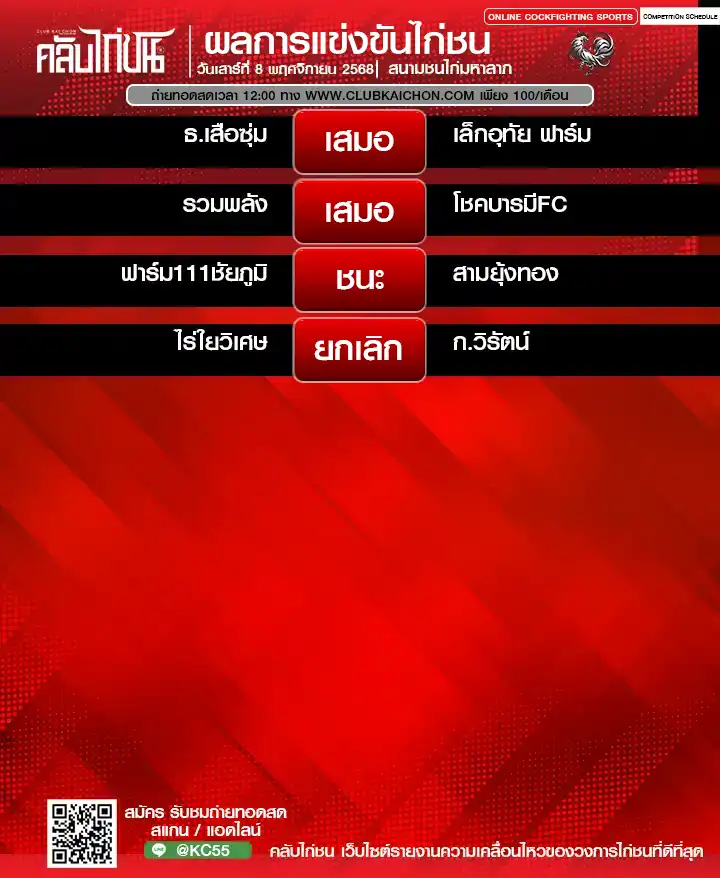 สำหรับคอไก่ชนทุกท่านที่กำลังมองหา โปรแกรมไก่ชนวันนี้ หรือต้องการรับชม ไก่ชนสด แบบเกาะติดขอบสนาม วันนี้เรามีข่าวดีมาฝาก! ทาง คลับไก่ชน ขอเชิญทุกท่านร่วมชมการแข่งขันไก่ชนออนไลน์จาก สนามชนไก่มหาลาภ ในวันที่ 8 พฤศจิกายน 2568 โดยสามารถรับชม ถ่ายทอดสดไก่ชน ได้ฟรี ไม่มีค่าใช้จ่าย