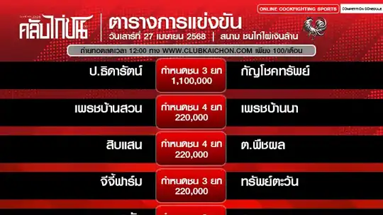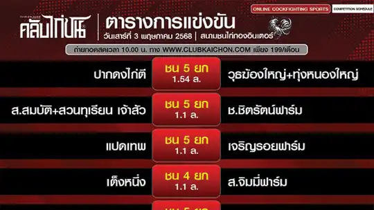 โปรแกรมไก่ชน 3 พฤษภาคม 2568