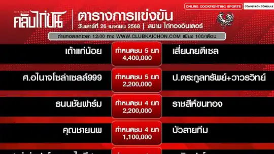 โปรแกรมไก่ชน 26 เมษายน 68