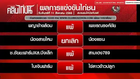 สรุปผลไก่ชน 11 สิงหาคม 68 สนามชนไก่บึงทับแต้