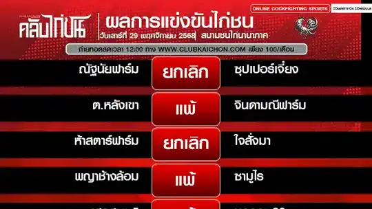 สรุปผลไก่ชน 29 พฤศจิกายน 2568 สนามชนไก่ทองอินเตอร์